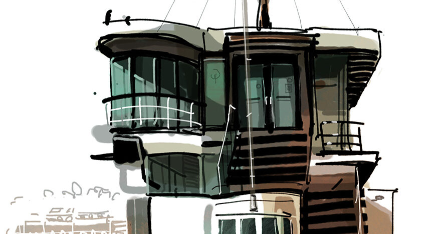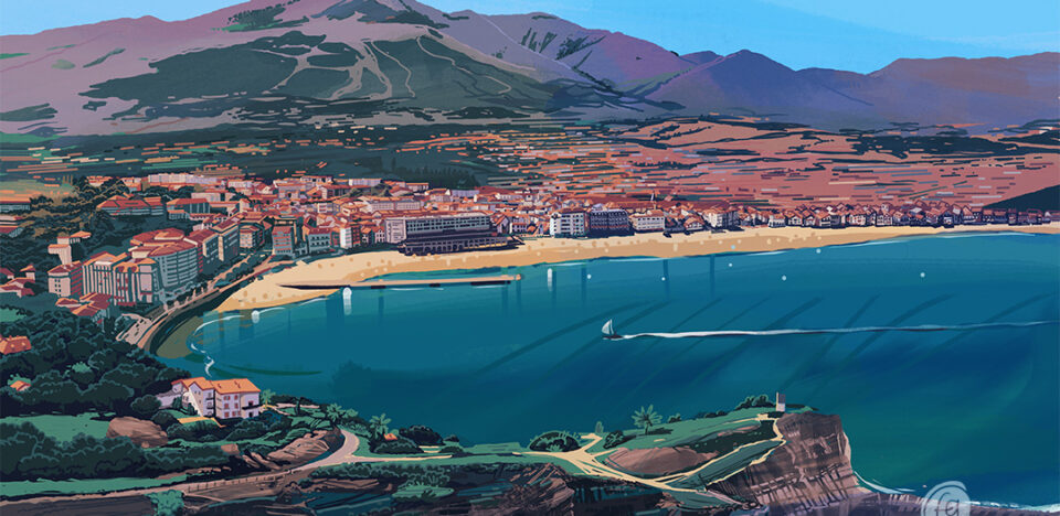 Dans ce dessin, je propose une vue de la baie de Saint-Jean-de-Luz réalisée sur l’iPad. On y reconnaît la grande courbe de la plage, les
