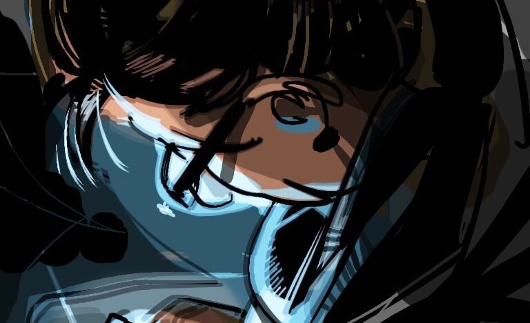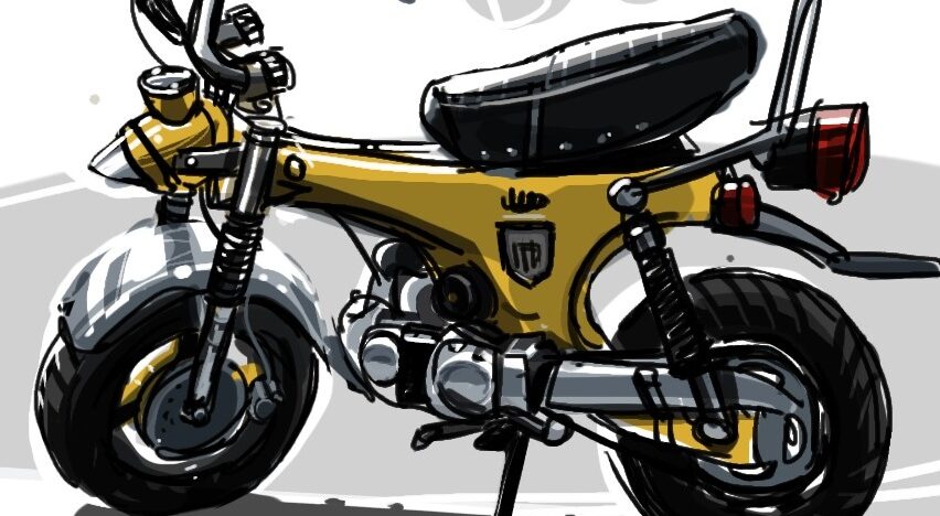Un deux-roues stationné sur le trottoir de la rue Montorgueil, éclairé par la lumière d’un réverbère. Sa silhouette, d’un jaune vif, évoque celle d’un insecte