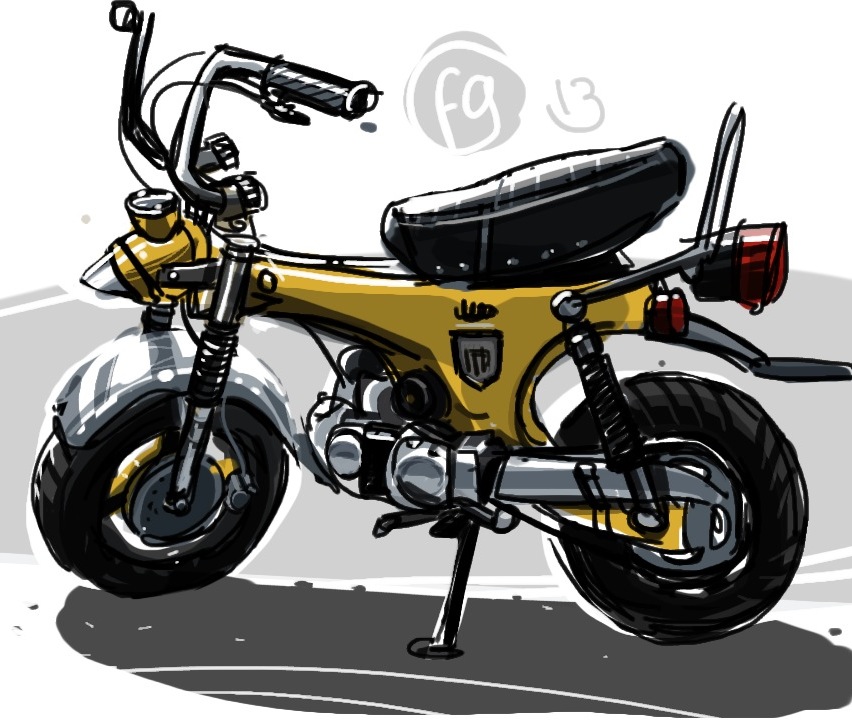 Un deux-roues stationné sur le trottoir de la rue Montorgueil, éclairé par la lumière d’un réverbère. Sa silhouette, d’un jaune vif, évoque celle d’un insecte posé dans cette ruche urbaine.