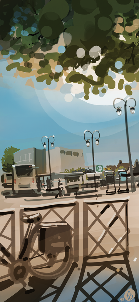 Fin de journée du mois d’août à vélo, en passant par le centre-ville d’Antony. Les Aoussiens ne sont pas encore tous rentrés de congés, ce qui maintient un trafic assez calme. Le soleil est bien présent, mais se cache derrière un arbre, illuminant subtilement la scène et apportant une douce chaleur estivale. Un instant de tranquillité, signe du retour à une activité normale.